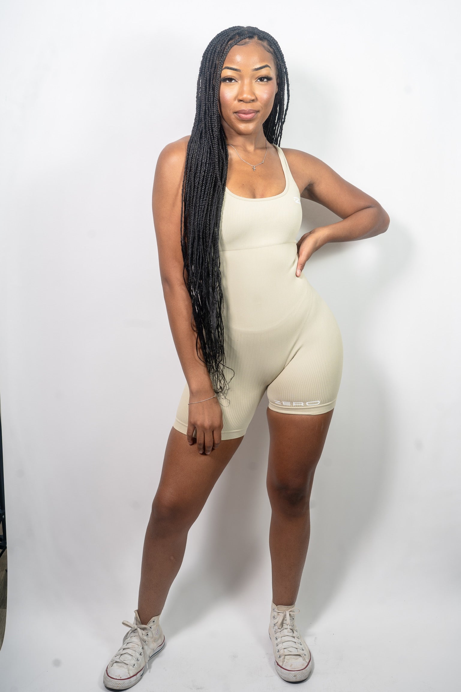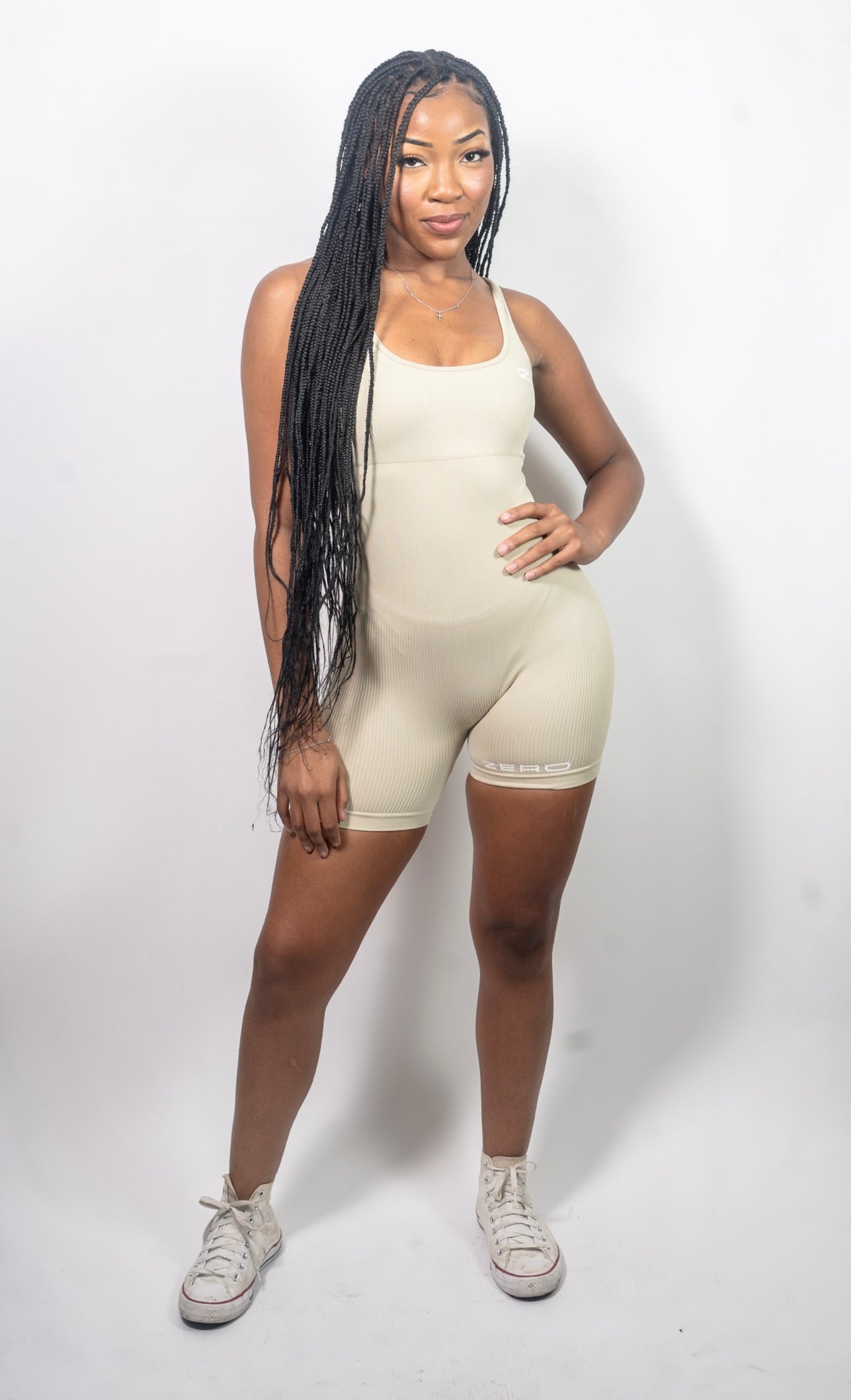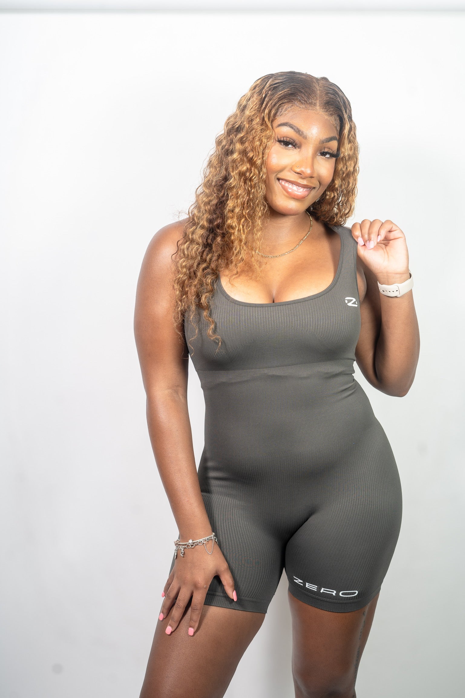 This romper is composed of 87% Nylon and 13% Spandex, boasting a sleek, seamless ribbing for irresistible comfort. With a U-Neck cut and integrated pads as a built-in bra, it offers a luxurious blend of luxury and practicality.